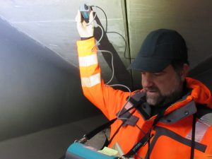 Beim Neubau des DLR-Bürocampus in Bonn ging es im dritten Bauabschnitt um die Kontrolle der Bewehrung der Decke des 1. Untergeschosses. Eine gute Gelegenheit, den jungen Kolleg:innen einen Einblick in den Ablauf einer Baukontrolle im Fachbereich Prüfstatik zu geben.